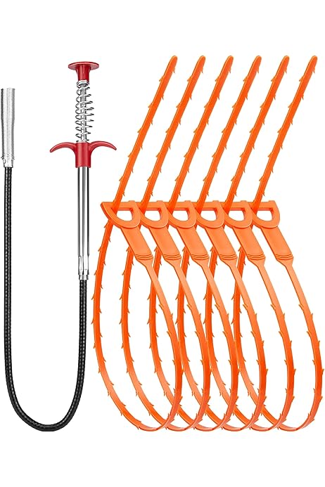 Oanie 7 Pack 25inch Drain Clog Remover Tool Drain Cleaner Hair Clog Remover 6pcs Drain Cleaner Sticks To Drain Hair Clog For Remover 1pcs Sink Snake For Shower Kitchen Sink Bath Tub Bathroom 6 1